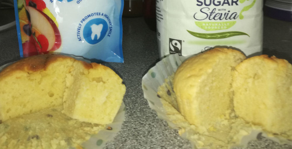 Not far behind in sweetness levels was the xylitol but I didn’t add the full amount in relation to the recipe I used so there is leeway for some changes there in the future. I think the xylitol was just as sweet as the standard recipe and if I had added more xylitol that my tasters would probably have rated it higher in the table. This bake was stodgier than the other bakes and more caramelised and crustier too.