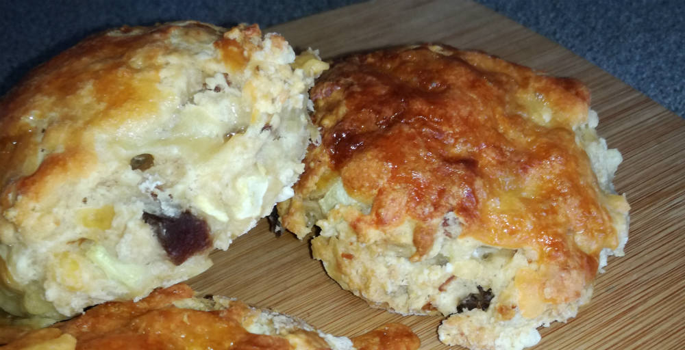 You can add whatever flavour you want into these savoury scones. A bit of ham would add to the Ploughman idea.